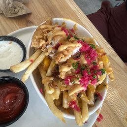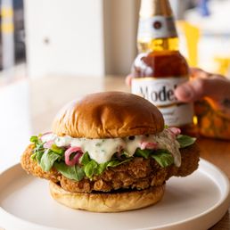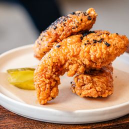 Delicious burgers, chicken, and hubby loved the onion rings! Found this place on Yelp. Thank you Yelpers. Parking can be a little difficult, but we drove around the block, and there was plenty of free street parking. The burger came out super fast, hot, cheesy, and peppery. Yum! The chicken strips were $13.99 I believe. They were huge! We ordered the spicy strips, and they definitely had a nice Nashville Hot vibe and nice kick. The service was top-notch. David was very helpful when we told him it was our first time here. A few tables available for indoor dining, and the place was clean and well stocked with napkins, silverware, etc. Side note- they actually use real plates and metal forks and knives for dine-in. Nice touch.